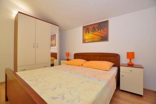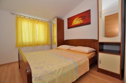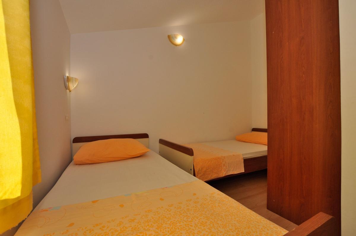 Apartment is 82m2 big, it is suited for 4 adults and 4 children. It is 3 bedroom apartment, two bedrooms with double bed, and a single room with a two separate beds. There is also an auxiliary bed for two in the apartment.